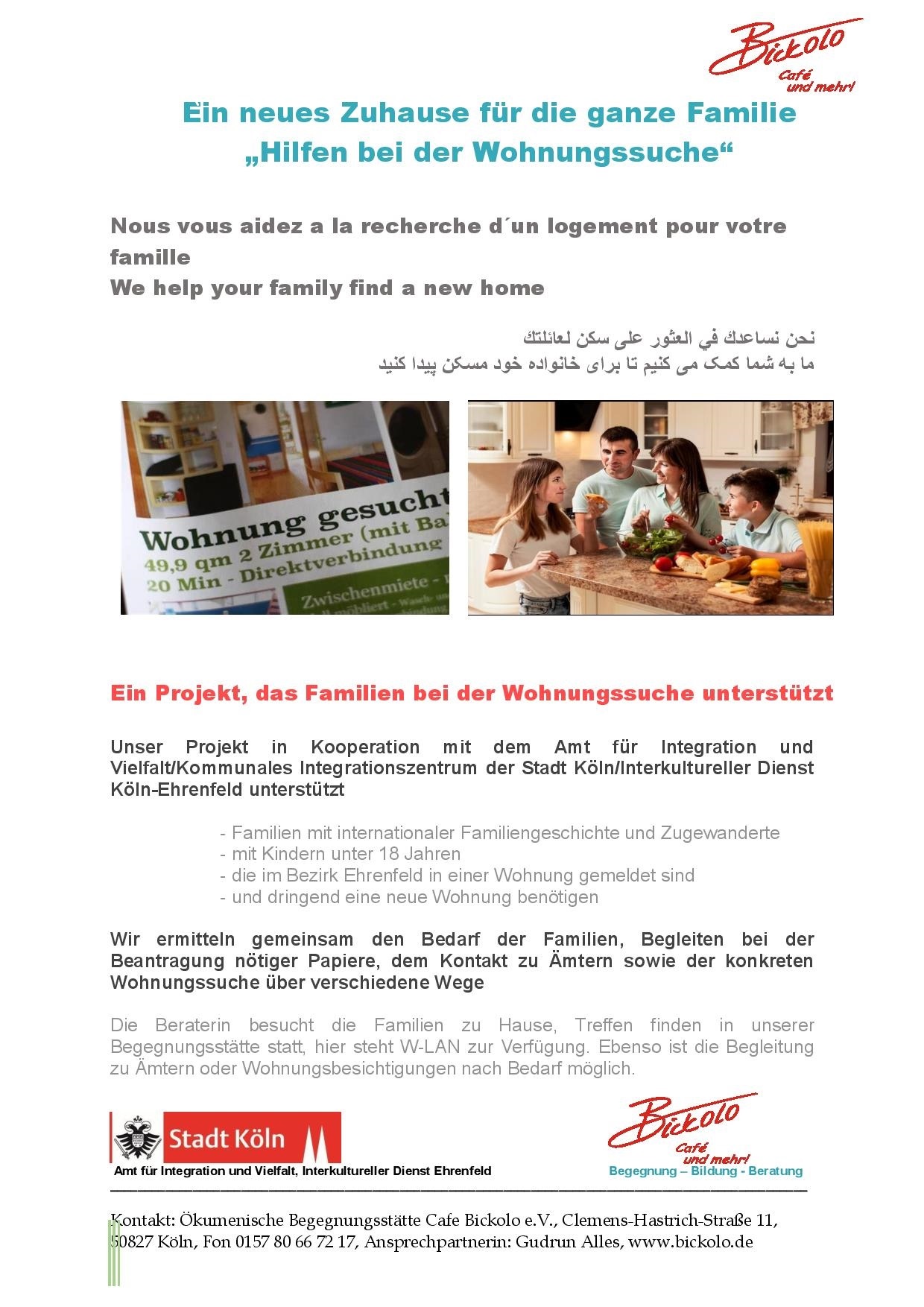 Seit 2022 unterstützen deshalb Familien mit Kindern unter 18 Jahre, die im Bezirk Ehrenfeld wohnen bei der Wohnungssuche. Ein schwieriges Unterfangen und doch konnten wir schon einige Familien erfolgreich unterstützen oder eine drohende Wohnungslosigkeit abwenden.