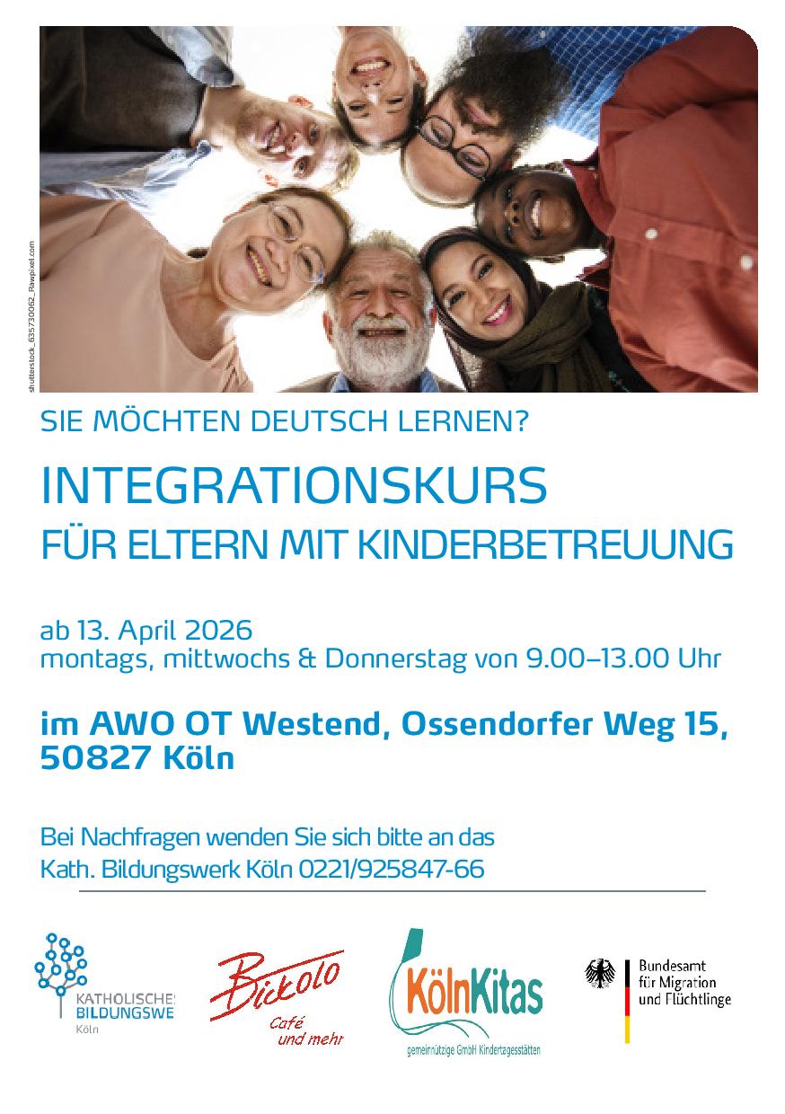 Ebenso freuen wir uns, dass im April wieder, in Kooperation mit dem katholischen Bildungswerk ein neuer Integrationskurs in Bickendorf mit Kinderbetreuung, startet.